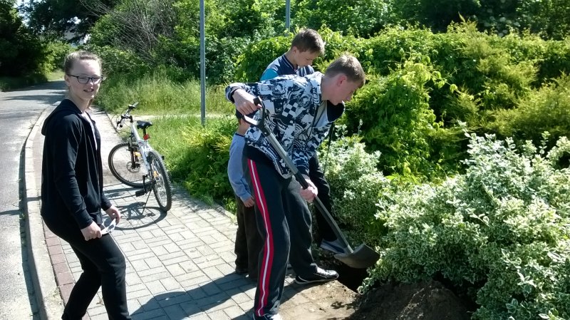 W miesiącu maju członkowie Młodzieżowej Drużyny Pożarniczej i strażacy OSP Słońsk wkopali znaki przy remizie w Słońsku.