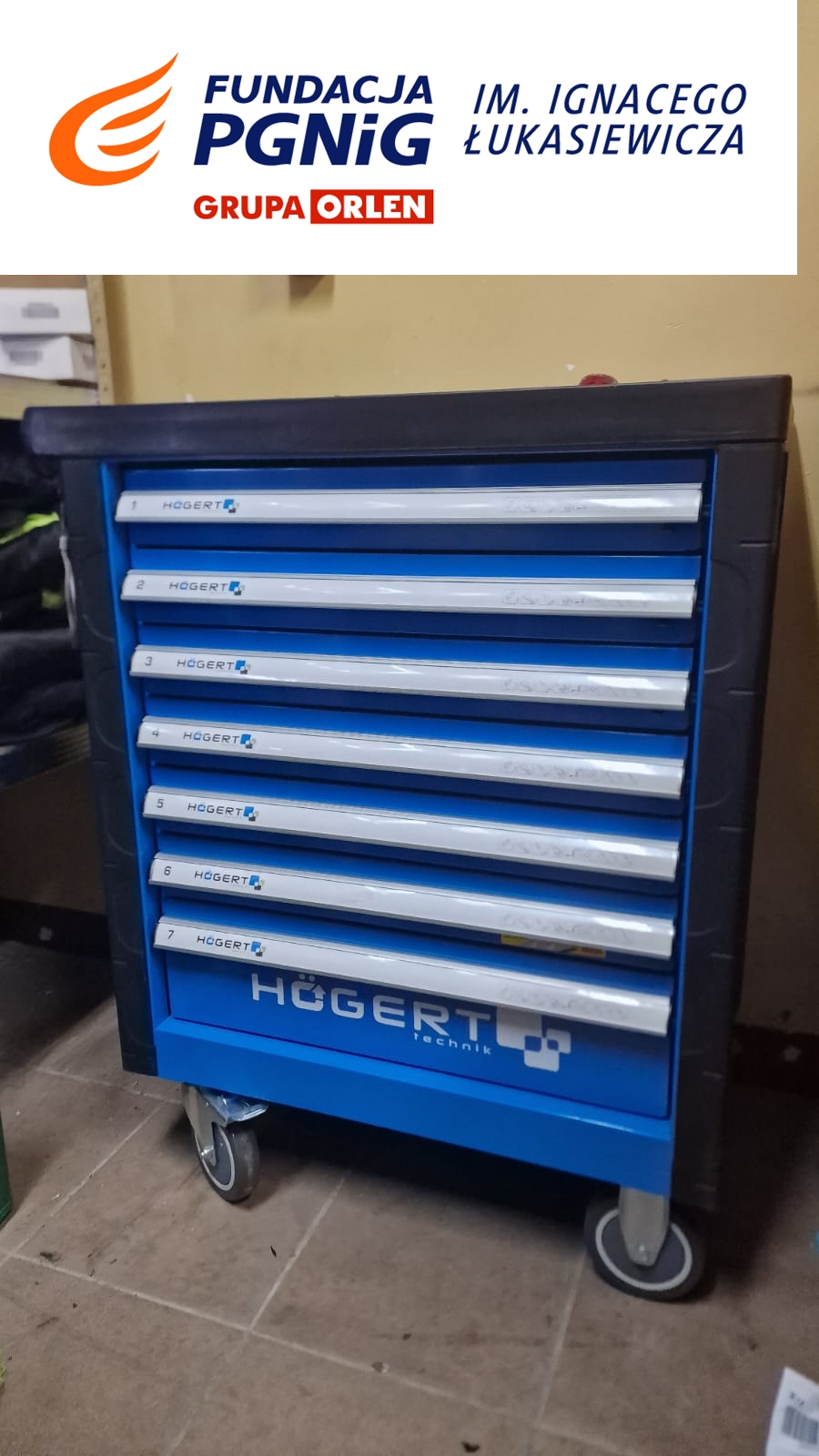 Pragniemy podziękować Fundacji PGNiG S.A. im. Ignacego Łukasiewicza za otrzymaną darowiznę, którą przeznaczyliśmy na zakup szafek na ubrania specjalne oraz szafy narzędziowej.