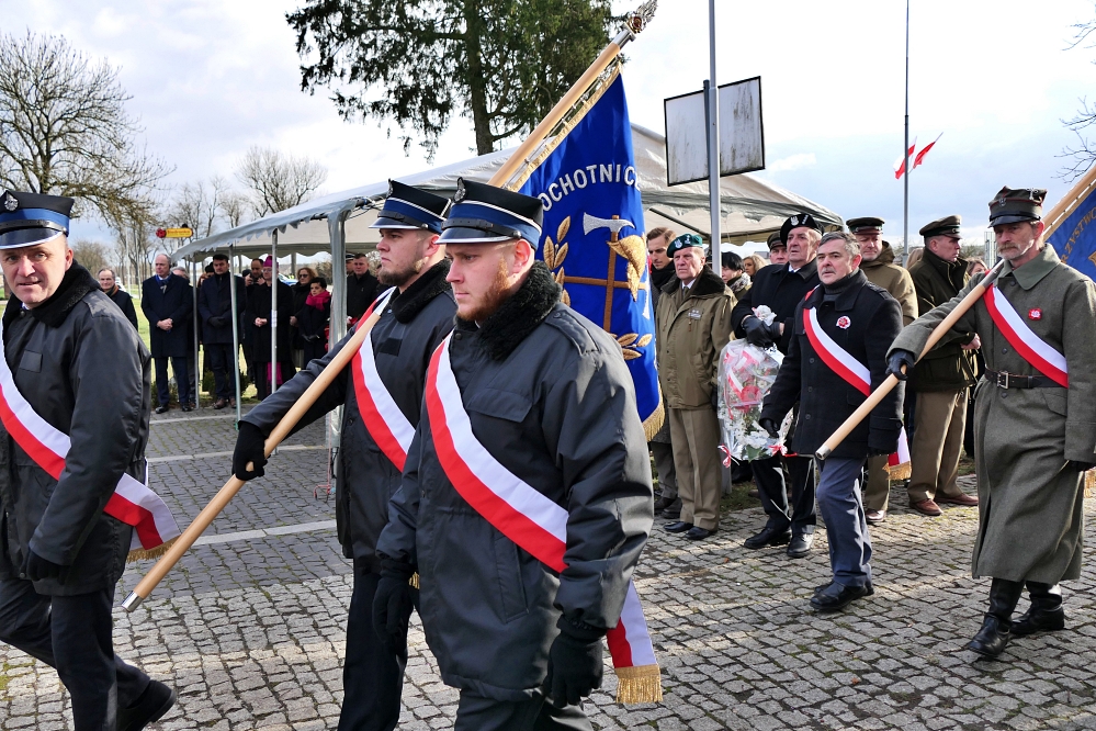 Nie zabrakło również przedstawicieli OSP Słońsk, którzy wystawili poczet sztandarowy i złożyli kwiaty przed pomnikami.