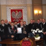 W wolnych wnioskach omówiono współpracę pomiędzy OSP, a jednostką Państwowej Strażą Pożarną w Sulęcinie oraz Gminą Słońsk. Prezes OSP wystąpił z wnioskiem o nadanie tytułu druha honorowego dla dh Stanisława Polewskiego, który od ponad 35-ciu lat działa w naszej jednostce, zarówno jako strażak, kierowca i jako skarbnik. W tym roku z uwagi na wiek przestał czynnie uczestniczyć w akcjach i być kierowcą samochodu pożarniczego w naszej jednostce. Podziękowano również Wójtowi Gminy Słońsk panu Januszowi Krzyśków za zaangażowanie i wkład pracy w pozyskanie nowego wozu bojowego dla naszej jednostki. Na koniec zebrania uchwałą Nr 2 nadano dh Stanisławowi Polewskiemu tytuł druha honorowego. Po czym Wójt Gminy Słońsk i Komendant Gminny OSP Gminy Słońsk wręczyli mu pamiątkową statuetkę. Całe zebranie zakończyło się wspólnym zdjęciem wszystkich uczestników Walnego Sprawozdawczego Zgromadzenia Członków OSP Słońsk.