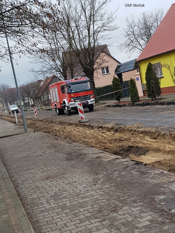 W dniu 07.02. o godzinie 13:25 jednostka OSP Słońsk została zadysponowana do przerwanej podczas prac budowlanych rury z gazem.